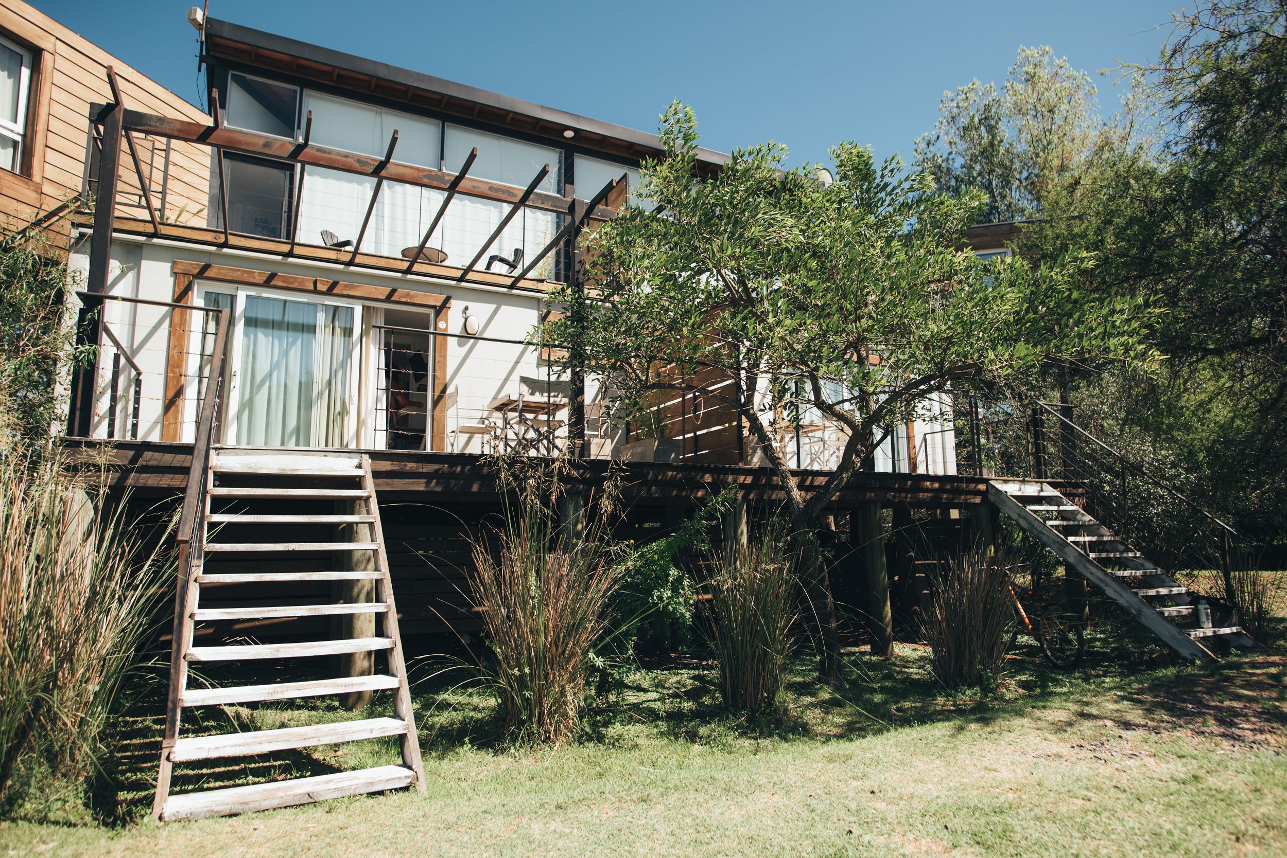Suites equipadas con camas, muebles y accesorios de primera, para que tu descanso sea lo más importante y no extrañes la comodidad de tu casa en tus vacaciones o tu escapada a Gualeguaychú. Construidas un par de metros por encima del parque y con un amplio deck para acceder a una vista magnífica de la naturaleza y de uno de los recodos más lindos del río. Personal las 24hs.